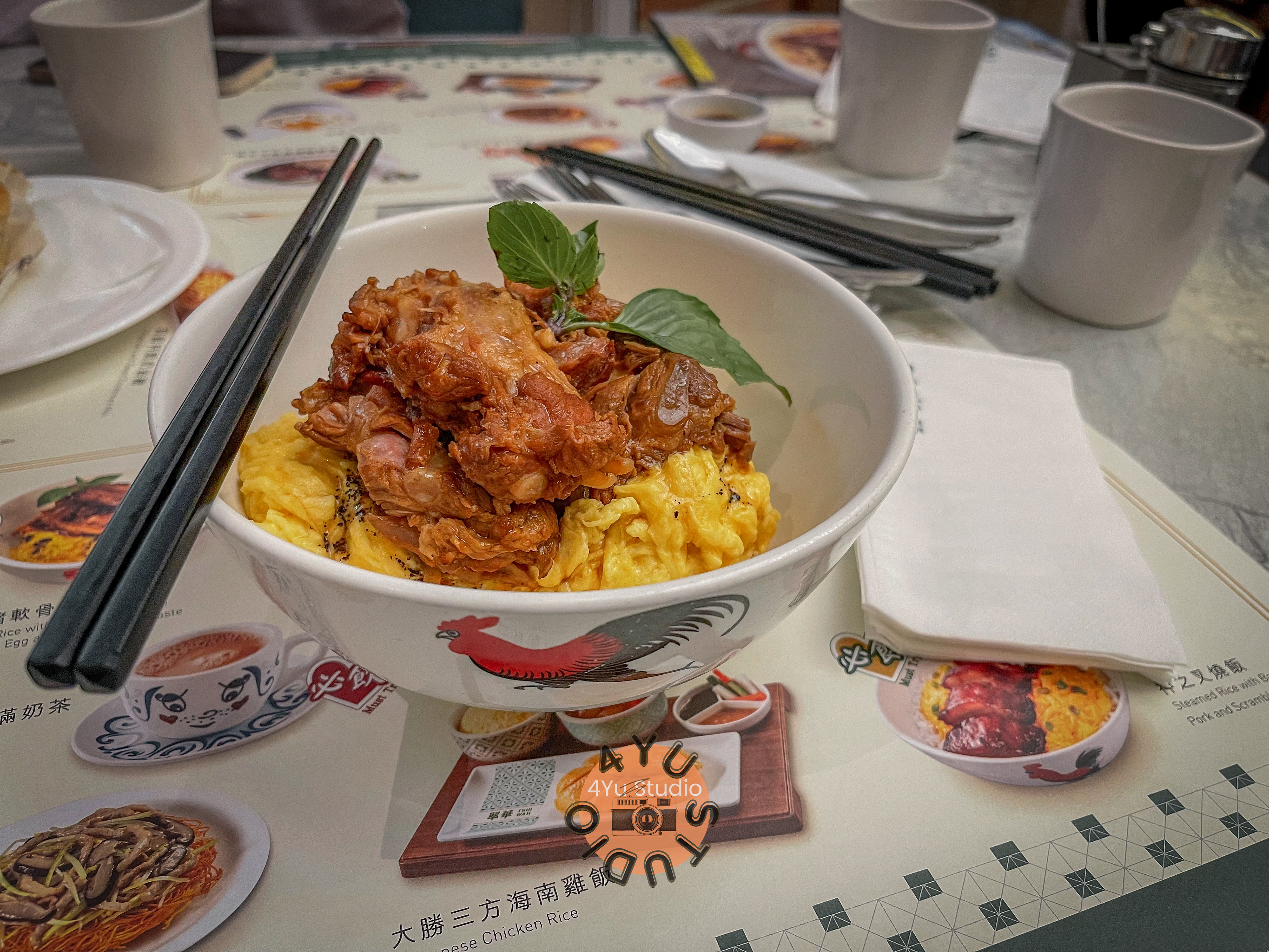 Tea Break at TsuiWah with HongKong Style Milk Tea and Rice with Pork cartilage on scrambled Egg.